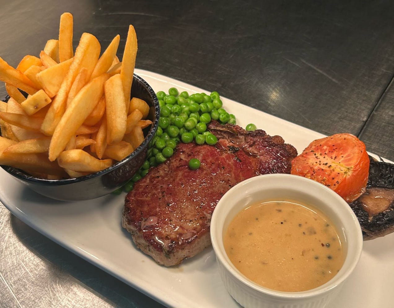 Served with Two fried Eggs, Rustic Chips and Garden Peas (GF) - Line Caught Haddock